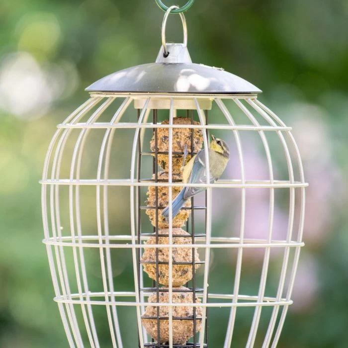 Hang this beautiful feeder on a tree or feeding pole system and enjoy all the small birds which come and investigate! If youβd also like to feed larger birds, then create a feeding area without protective cages on the other side of your garden, this ensures the smaller birds have a safe and accessible feeding area and are not at risk of being scared away.