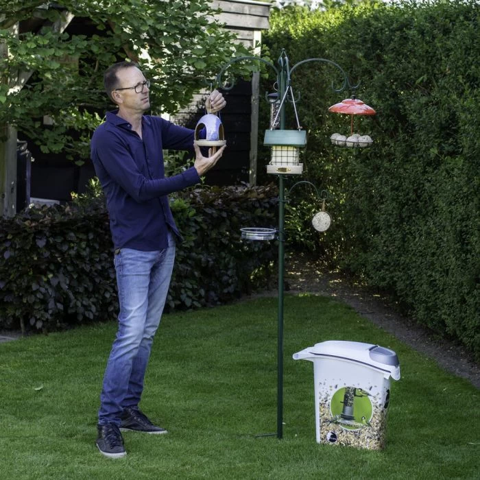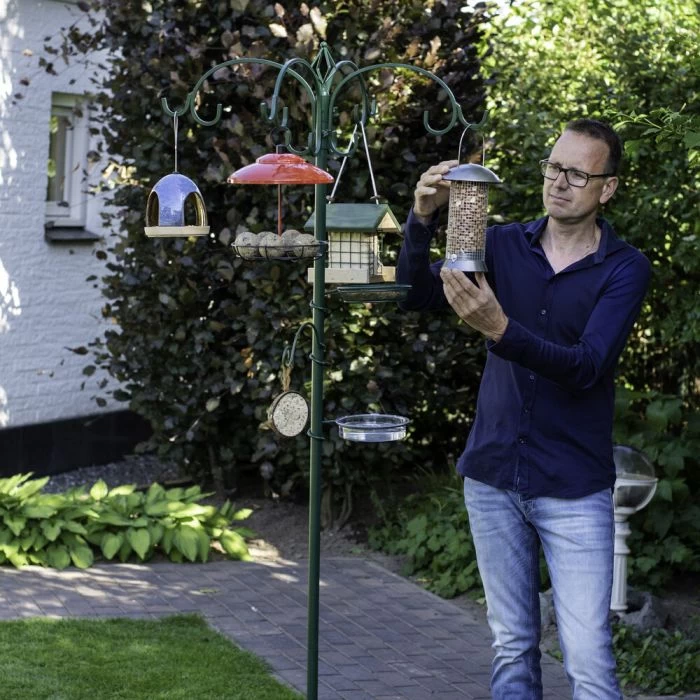 With this stylishΒ metal feedingΒ system, you canΒ offer different foodΒ types and feeders atΒ the same time. ThisΒ allows you to easilyΒ attract differentΒ bird species to yourΒ garden. After all, aΒ large diversity ofΒ foods and feedingΒ systems meansΒ increased chances ofΒ different bird speciesΒ visiting your garden.