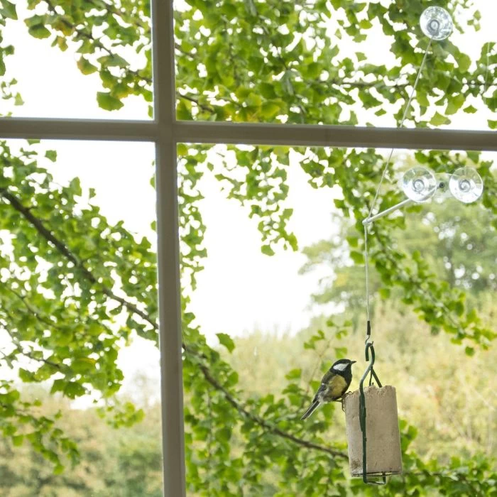 This is a unique feeding device that attaches with suction cups to your window and supports a hanging Peanut Cake Tube. Watch the birds swing back and forth as they enjoy their feast.