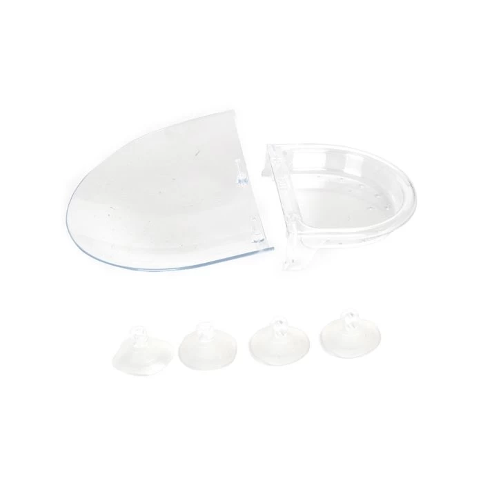 The feeding bowl is equipped with sturdy suction cups with which you can attach to the window. The roof can be placed separately above the feeding bowl. Leave a gap of about 10cm, and the birds can still land well on the food bowl and the roof keeps the food dry in rain.