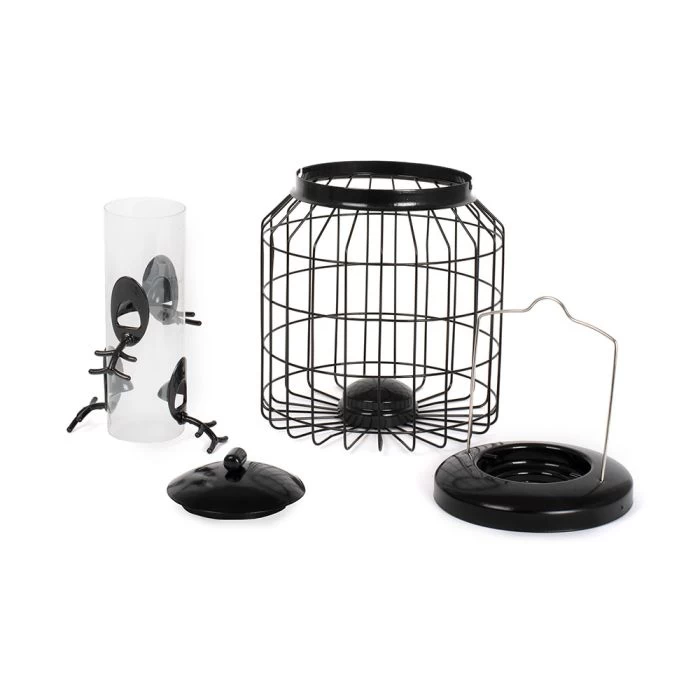 The Brussels Seed Feeder Guardian Pack consists of a 4 port seed feeder and a protective guardian cage β a modern design in stylish powder-coated black metal that will integrate well with any garden.