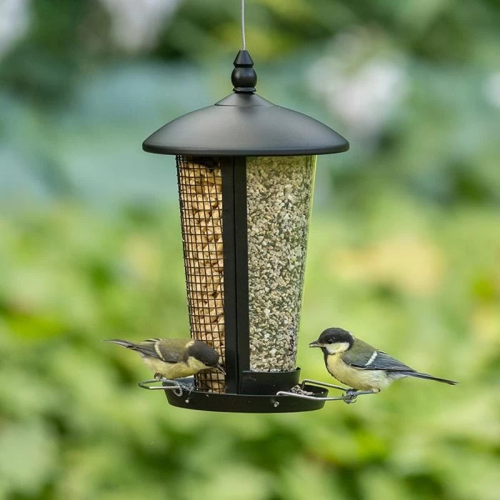 The Edessa Multi-Feeder is a metal feeder that is divided into two parts making it suitable for feeding seed mixes and peanuts simultaneously.Β