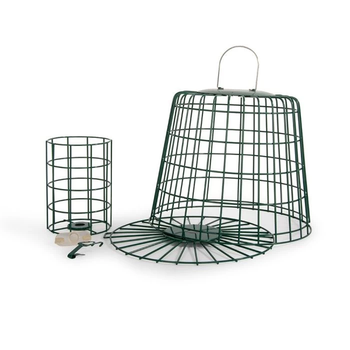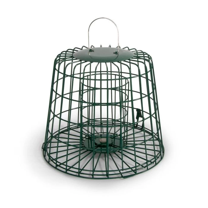 Designed by CJs ornithologists, you can offer our complete range of high energy Fat Balls, Peanut Cake Squares and Peanut Cake Tubes from the safety of our Feeder Guardian. The design makes it easy to dismantle for filling and cleaning. It can be hung, pole mounted or used free standing. Pole not included.