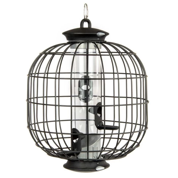 The cage is made of high-quality material and finished with a durable powder coating. The openings between the bars ensure that small birds can quietly eat from the feeder but prevent larger birds and squirrels from pilfering the food. Now you have the choice to use a Guardian or not depending on which birds visit your garden.