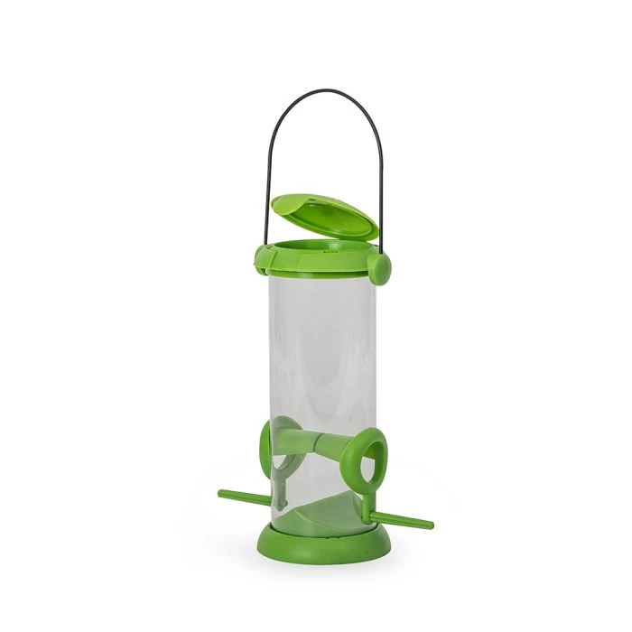 Seed mixes are a firm favourite among a variety of birds and can be offered all year round.Β This recyclable plastic feeder is the perfect size for little hands to carry and easy to open. Simply fill the feeder with high-quality seeds, click the lid back on and hang it in your garden close to trees or shrubs, to give birds some protective cover. Keep an eye on the feeder to see which birds stop by!Β