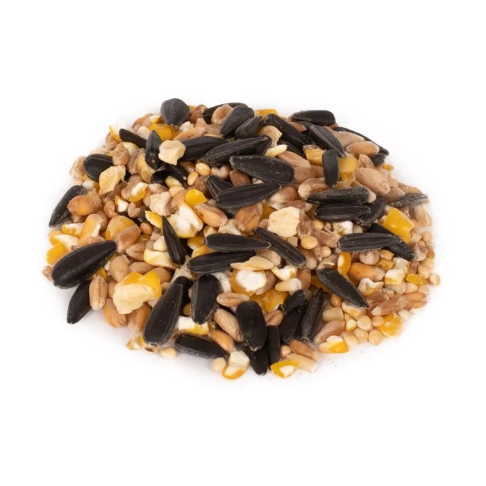 Composition: Organic wheat, Organic kibbled maize, organic black sunflower seeds, organic pinhead oatmeal and organic yellow millet.