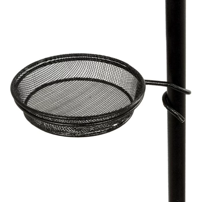 The pole includes 2 hooked arms, ideal for hooking silo feeders and feeder houses, a smaller hook slightly further down the feeder for smaller treats, and two bowls – one for water and the other for table seed mixes.