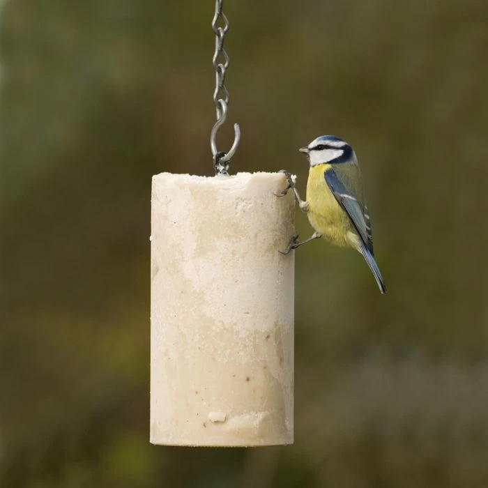 These cakes can be fed either from a hanging or pole-mounted feeder, or chopped up on a table. They can also be chopped into small pieces (1cm cubes) and scattered around the edge of your feeding area to give smaller and more timid species (such as Dunnocks, Wrens and Blackbirds) a chance to enjoy them.
