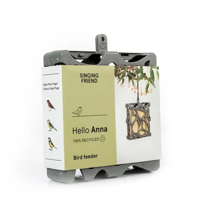 The SingingFriend peanut cake holder Anna and is ideal for offering our tasty delicious peanut cakes to your birds with a modern eco-friendly style. A CJ Wildlife peanut cake square fits perfectly in the Anna holder and with just two top clips to open and close, filling is very quick and easy.