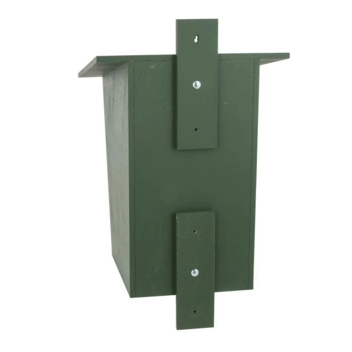 Research has shown that it helps to add a layer of loose dry material such as wood shavings or shredded bark to the nest box before the breeding season starts, which may be as early as January for Tawny Owls. In an exceptional year Stock Doves may still be nesting as late as November, so the best month to clean the boxes is December. The front of the nest box is hinged and secured with a latch, so cleaning is simply a matter of opening the front, removing any contents and replacing the shavings or bark.