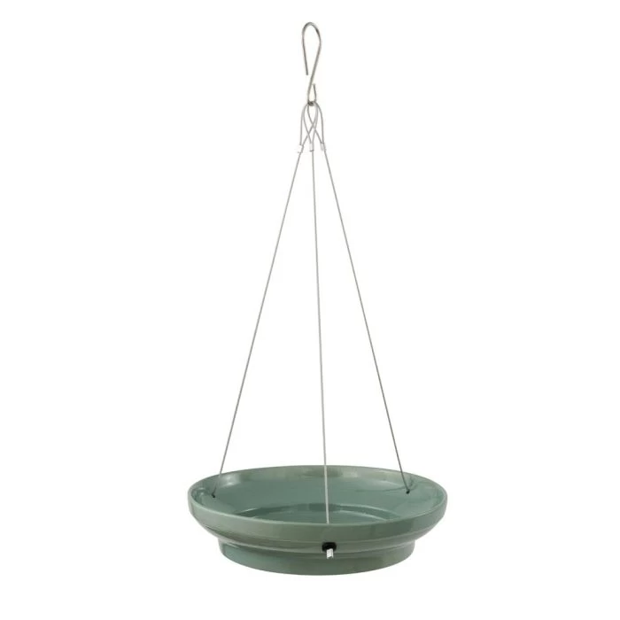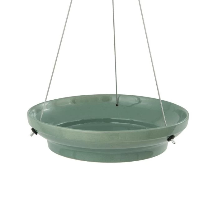 The Vesi bird bath is an ideal way to offer water to birds. It is a ceramic bird bath which comes with metal suspension cords. This makes it easy to hang from a tree or hanging hook.Β